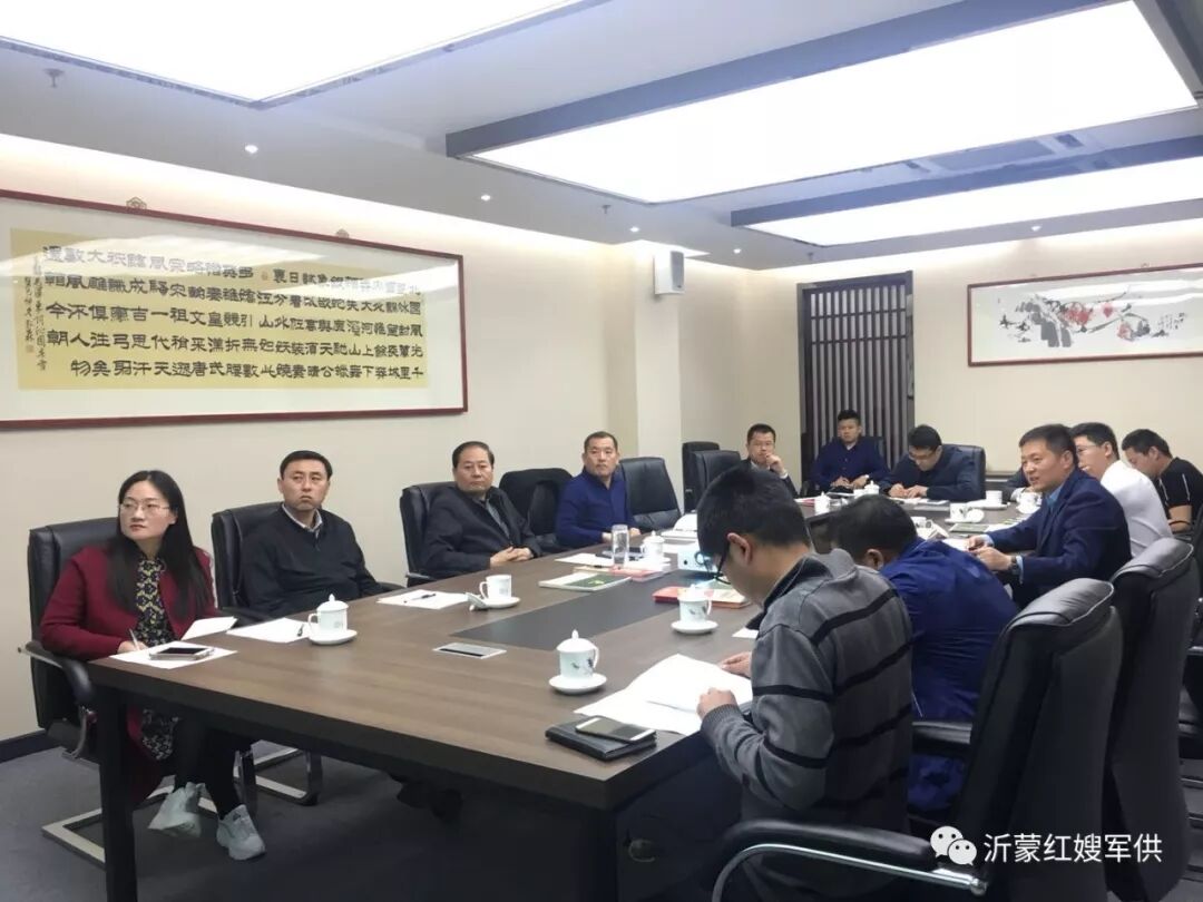 5月3日,河东区委常委、副区长李英国,河东区政协副主席张强 ,河东区 招商局局长李亮,太平街道办事处主任张家迎及河东区招商局副局长郁有雪 莅临沂蒙红嫂军供服务有限公司,就沂蒙红嫂军供融合产业园的建设召开座谈会。